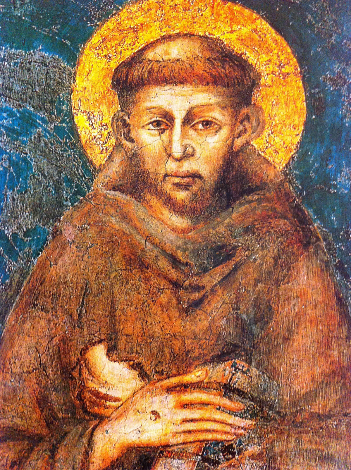 Giovanni Francesco Bernardone nació en Asís (Italia). Durante su juventud llevó una vida mundana, pero tras una enfermedad y una visión en San Damián («Repara mi casa»), decidió cambiar su vida.